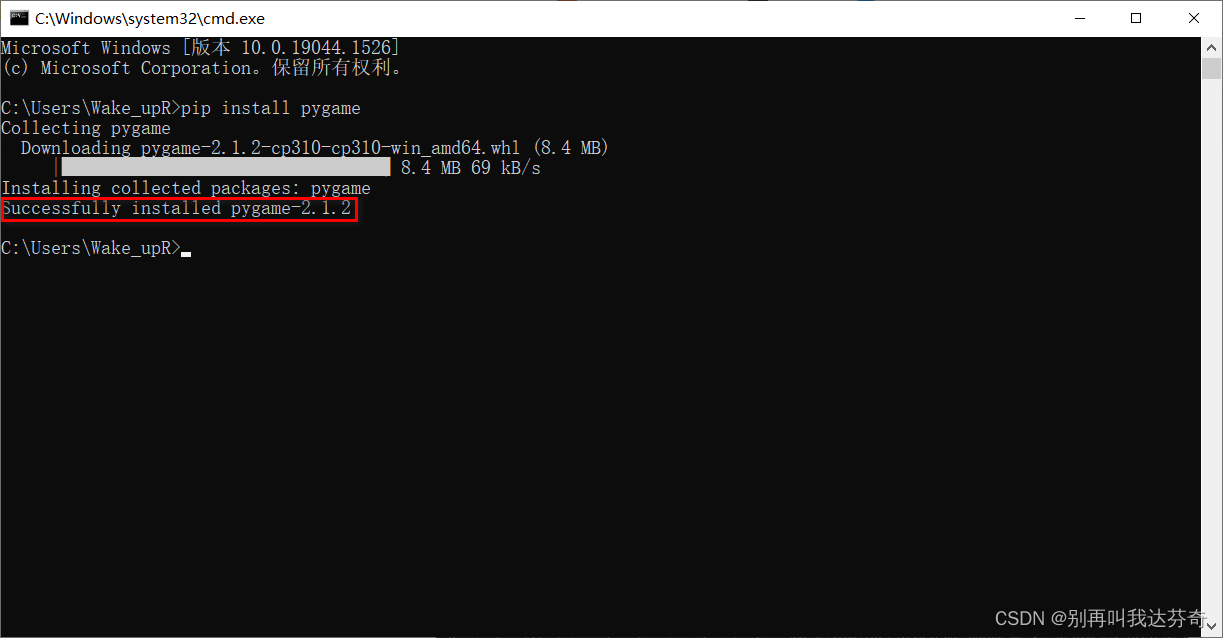 恭喜你! pygame安装完成了! 现在可以去验证一下了!