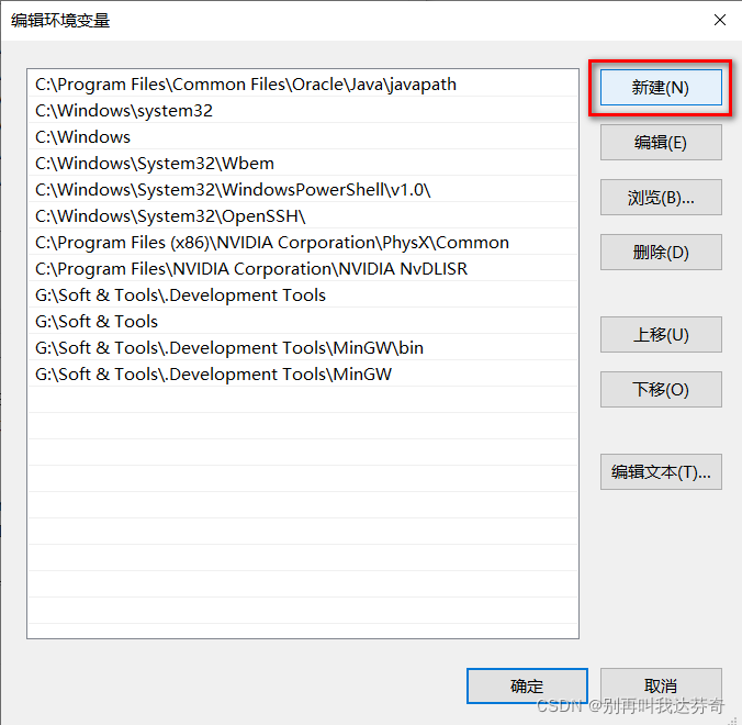 步骤五: 在弹出的编辑环境变量窗口中点新建