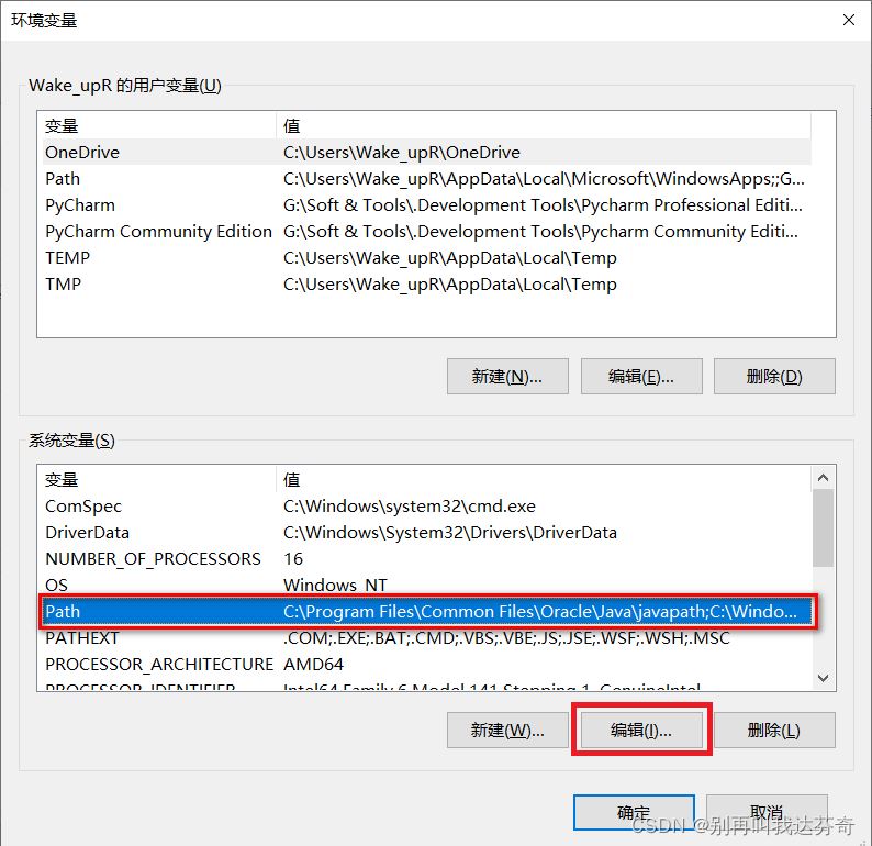 步骤四 : 在弹出的环境变量窗口中在系统变量选项栏中找到选项"Path" 然后选中点编辑