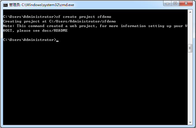 这个时候,就会生成一个工程目录,如上面的提示所示。在C盘下会有一个目录zfdemo。