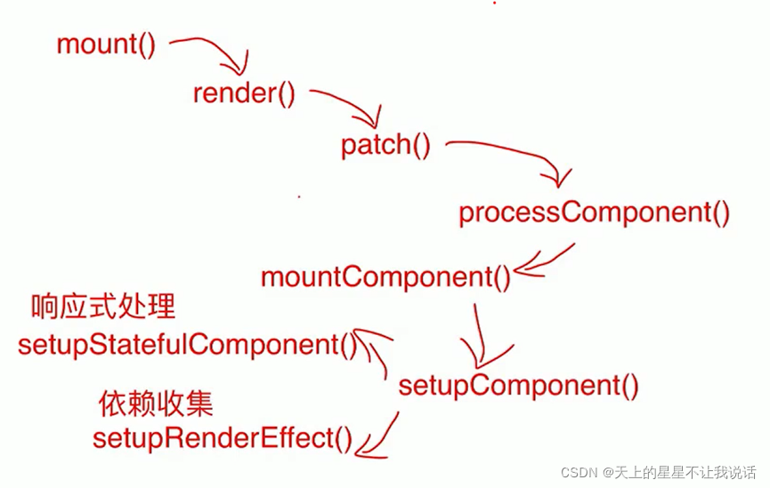 在实现响应式的过程中,依赖收集是和其紧密相连的东西,其中setupRenderEffect函数中使用effect函数做依赖收集。进入setupRenderEffect函数内部,在上面的代码中有这个函数,这里不一一赘述,我们继续往下看。进入到该函数内部,会看到如下代码。effect可以建立一个依赖关系:传入effect的回调函数和响应式数据之间;effect就相当于的vue2里面的dep,然后vue3里面没有watcher了。