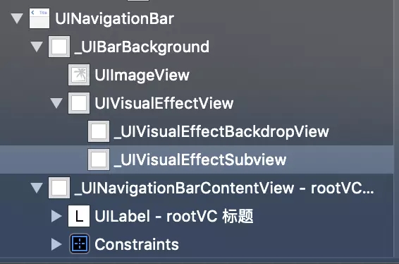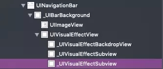 3 修改barTintColor 属性 NavigationBar 会为我们在 _UIVisualEffectView 中添加一个 我们自定义颜色的 _UIVisualEffectSubView