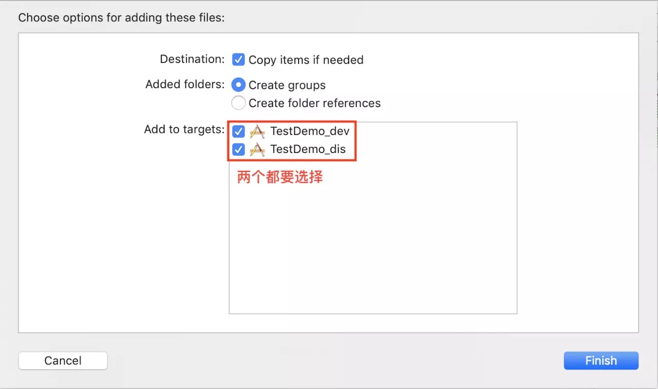 六: 添加新的文件时, 需要勾选多个Target, 以保证代码一致