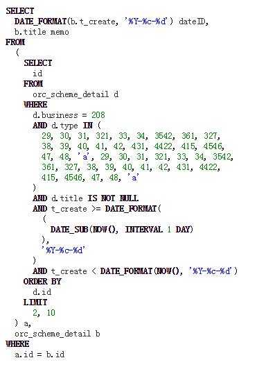 FROM (SELECT id FROM orc_scheme_detail d WHERE d.business=208