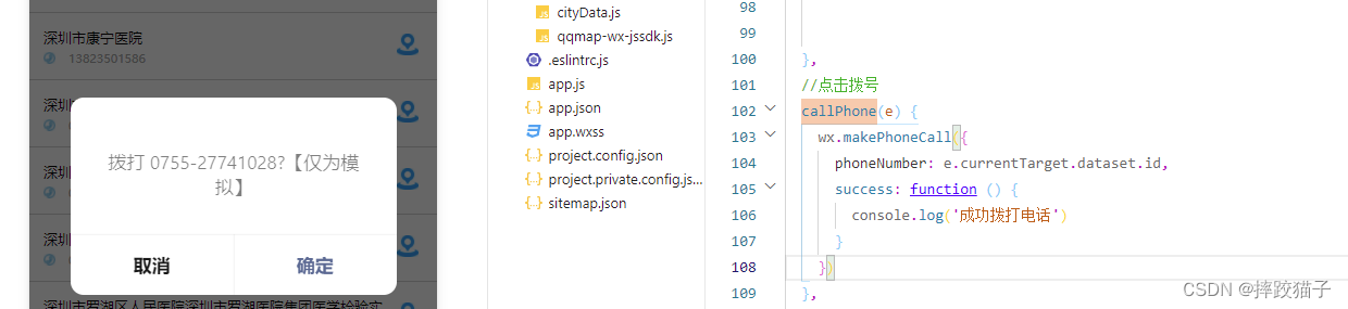 - 拨号功能,在拨号图标实现对应的函数,将循环中的电话号码以data-id的方式进行传递。