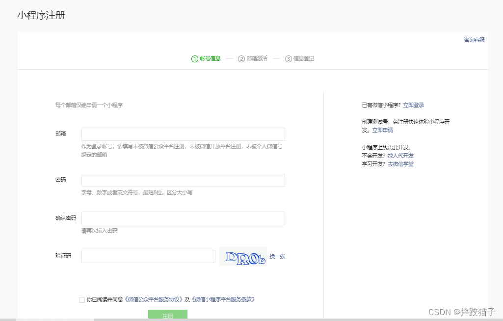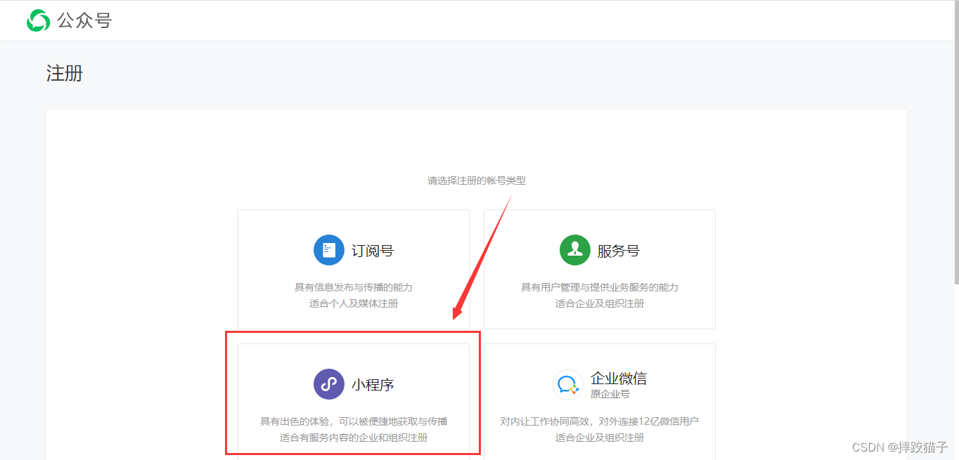 - 选择小程序,并在表单填写所需的各项信息进行注册。