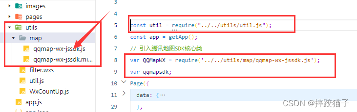 - 在index.js中引入utils文件夹下面的引入腾讯地图SDK核心类。
