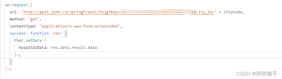 url: 'http://apis.juhe.cn/springTravel/hsjg?key=这里填写你的应用key&city_id=' cityCode,