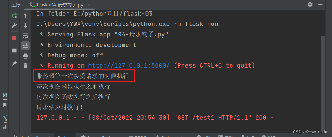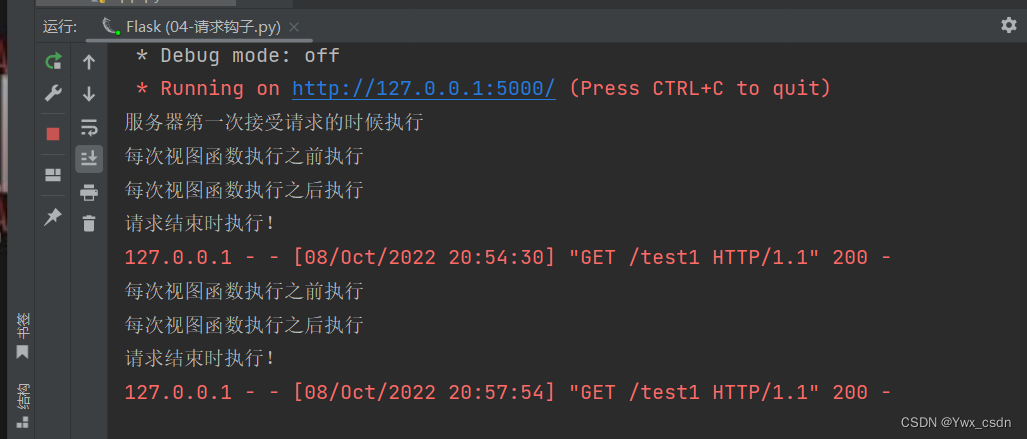1、通过对比可以发现第二次执行时,@app.before_first_request 装饰器并没有执行,因为在第一次调用时,就已经把准备工作做好。