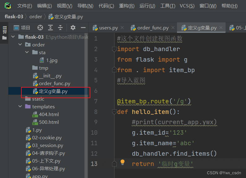 g对象可以结合前面学的蓝图来使用(感兴趣的可以去看前面章节flask 蓝图学习)