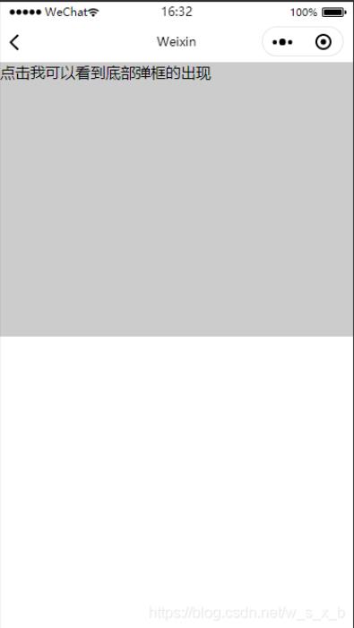 <view bindtap="clickme">点击我可以看到底部弹框的出现</view>