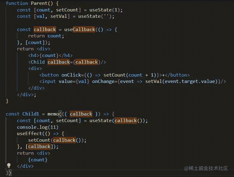 useCallback 讲完了useMemo,接下来是useCallback。useCallback跟useMemo比较类似,但它返回的是缓存的函数。我们看一下最简单的用法: