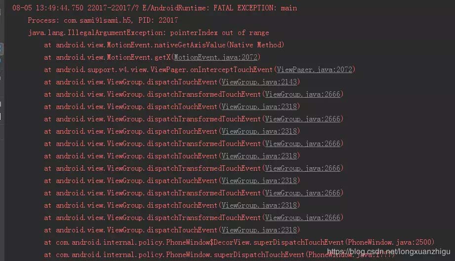 java.lang.IllegalArgumentException: pointerIndex out of range