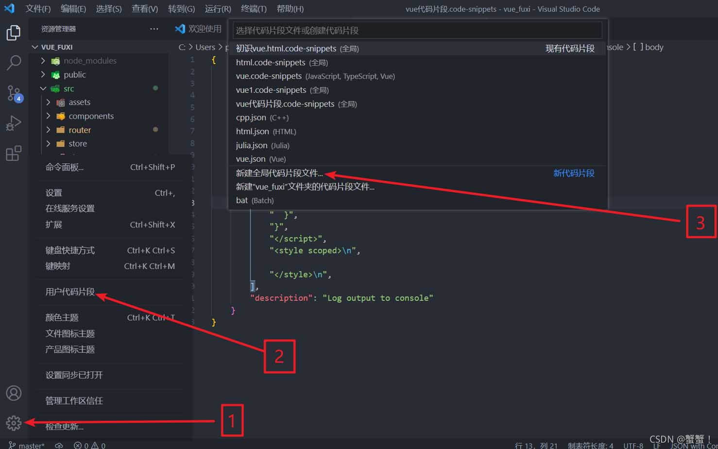 注意:"prefix":"自定义", 可以自定义这个就是使用代码片段的名字
