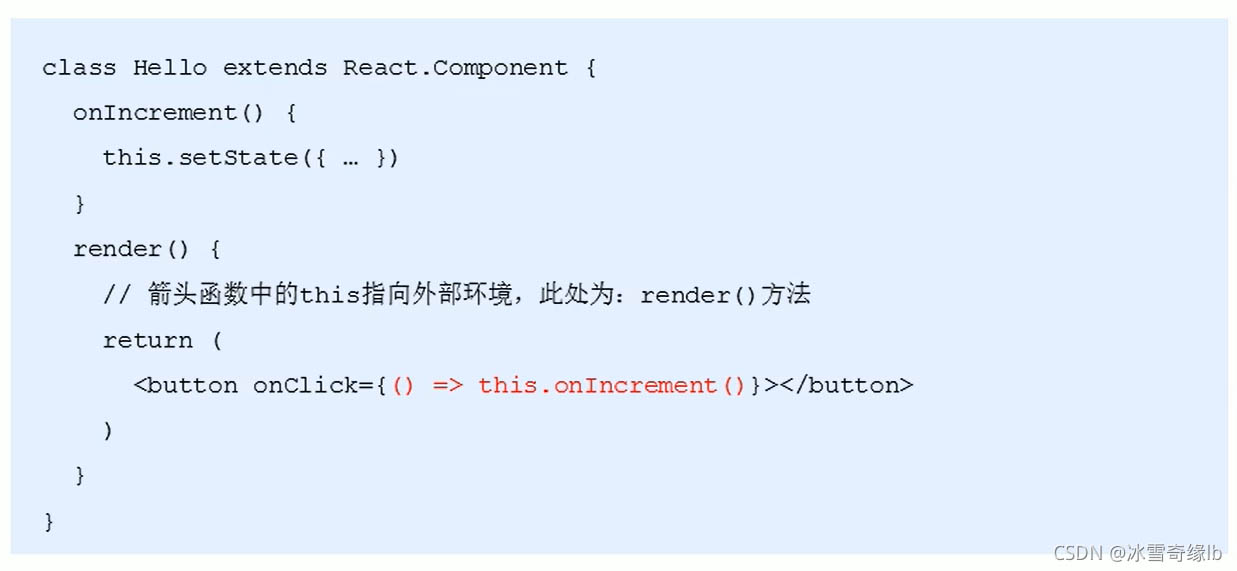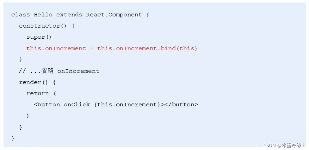 - 希望:this 指向组件实例( render方法中的this即为组件实例)