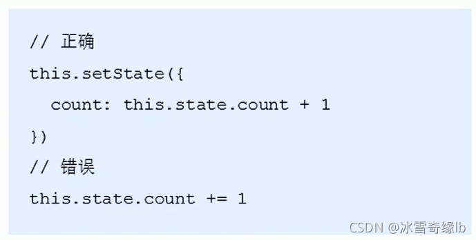 - 注意:不要直接修改 state 中的值,这是错误的!!!