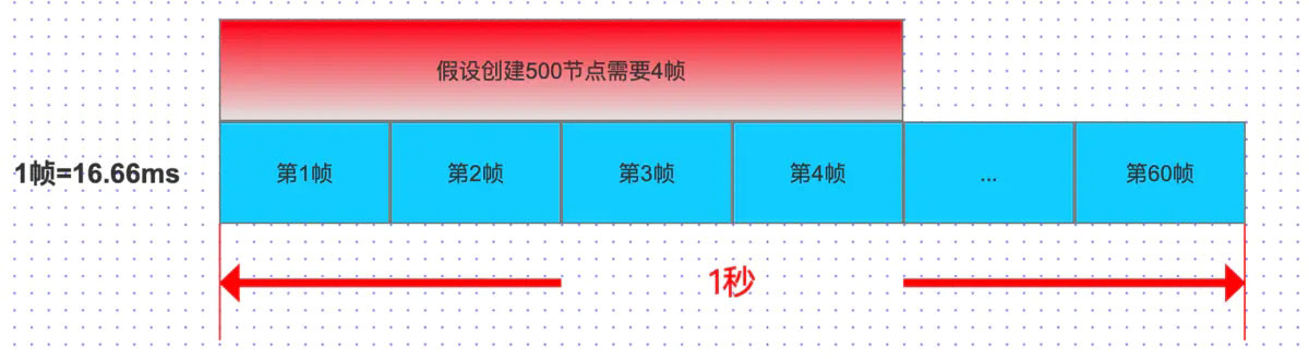 配合上图,就比较好理解「分帧加载」了,具体执行过程为