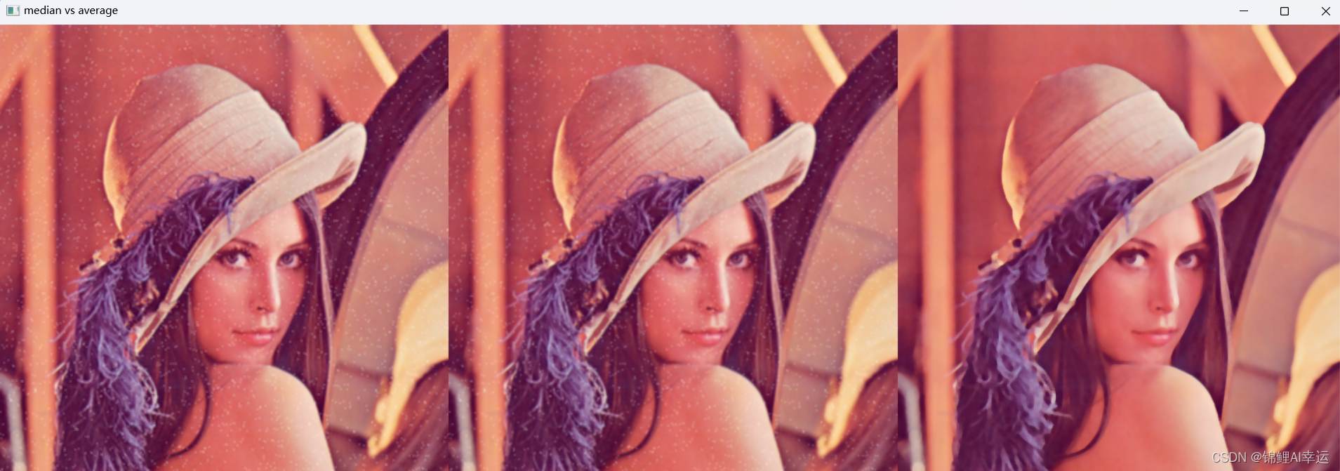 res = np.hstack((blur, aussian, median))