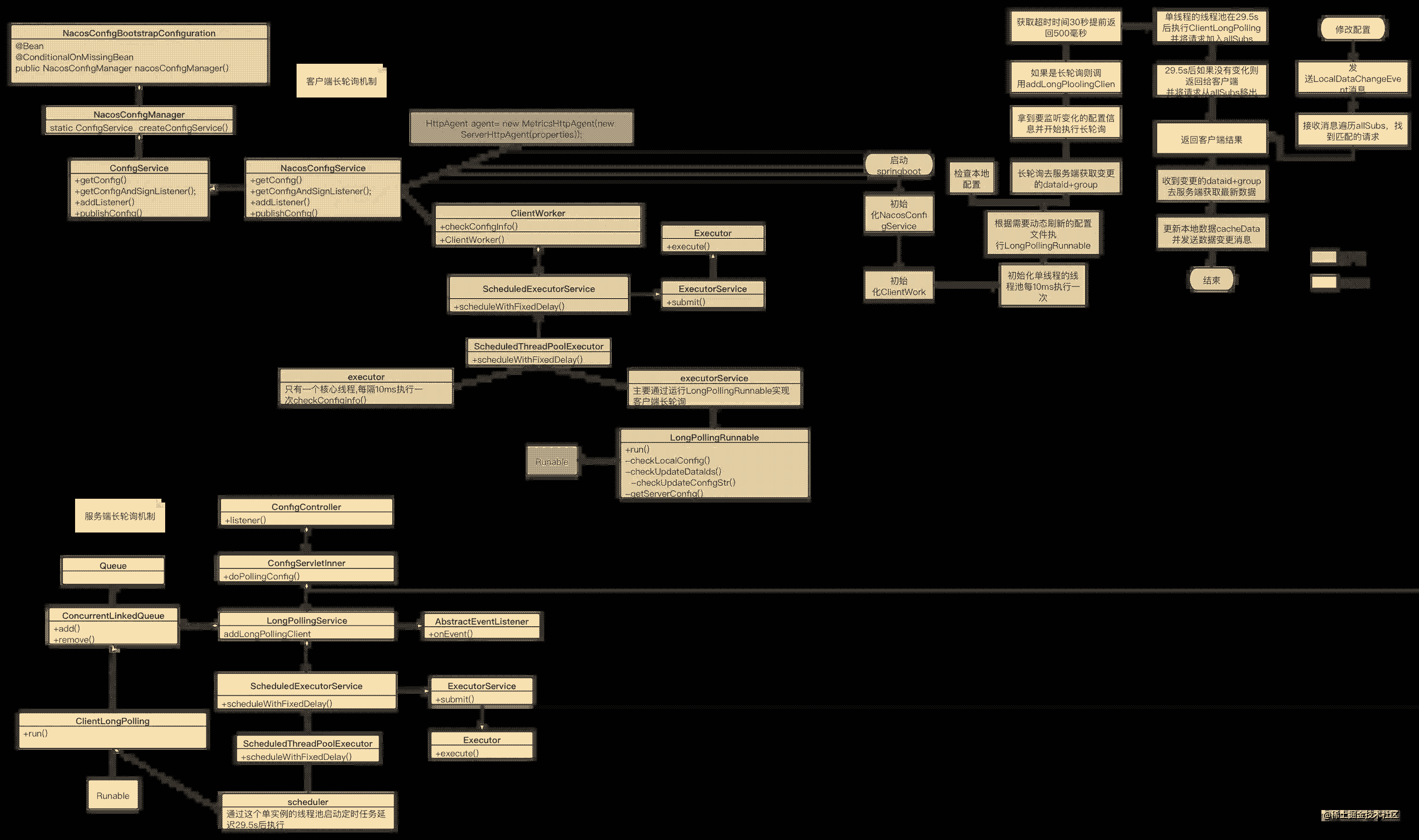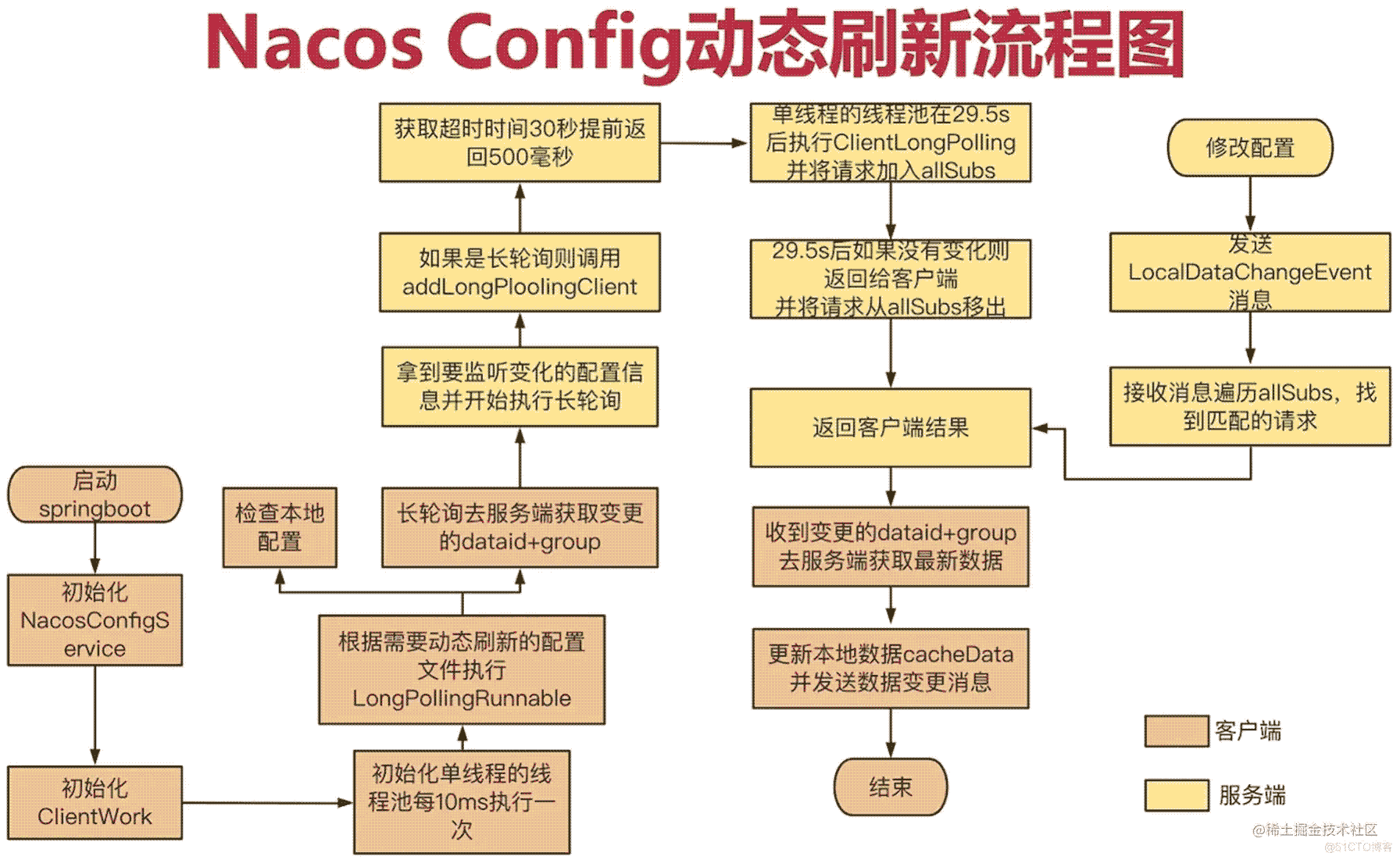 如果你觉得源码枯燥的话,可以选择不看后半部分的源码,先通过这张流程图去了解Nacos动态刷新机制的流程: