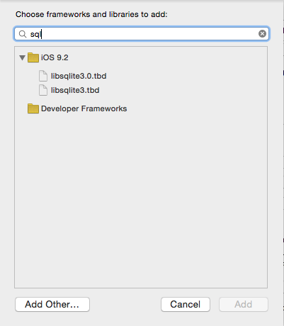这里需要导入一个系统自带的文件libsqlite3.0.tbd