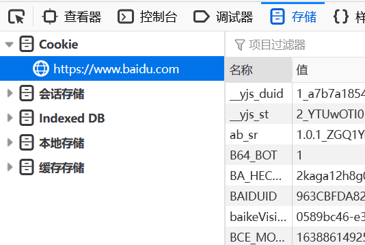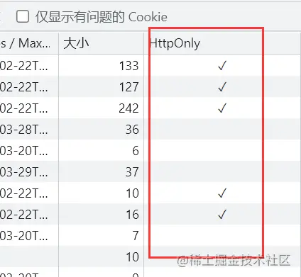 当然我们看百度的cookie,加上了 HttpOnly。HttpOnly 是包含在 http 返回头Set-Cookie 里面的一个附加的 flag,所以它是后端服务器对 cookie设置的一个附加的属性,在生成 cookie 时使用 HttpOnly 标志有助于减轻客户端脚本访问受保护 cookie 的风险(如果浏览器支持的话)