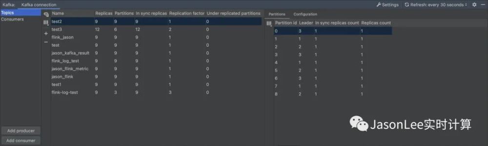 可以看到所有 topic 的详细信息,包括 partition,replicas 等,还可以查看 Consumers 的情况,这个功能还是不错的,虽然现在也有很多开源的 kafka 监控工具,但是配置起来还是有一点门槛,这个插件的配置几乎是零门槛,对于简单的查看 kafka 的信息还是非常不错的。
