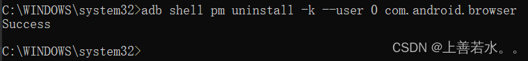 执行命令后,提示Success就表示卸载成功。以卸载系统浏览器为例: