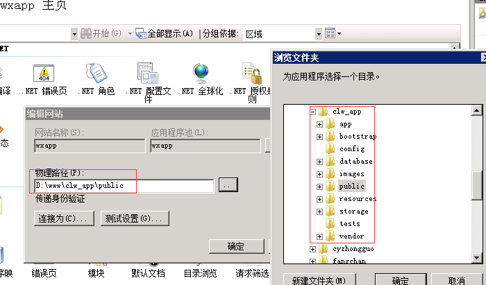 由于IIS没有像Apache.htaccess文件,创建一个Web.config文件在 D:\www\clw_app\public 下面