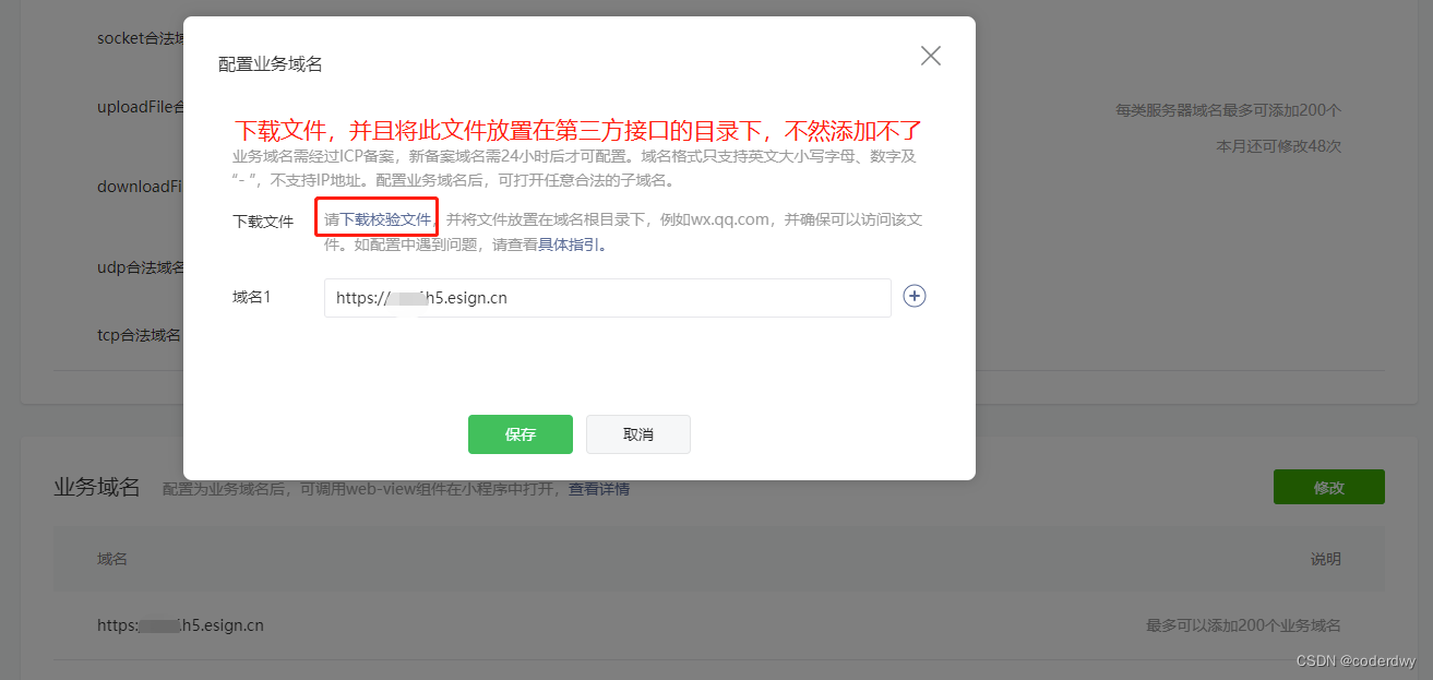 配置业务域名时,需要把校验文件发给第三方,在他们接口地址的目录下添加该文件,