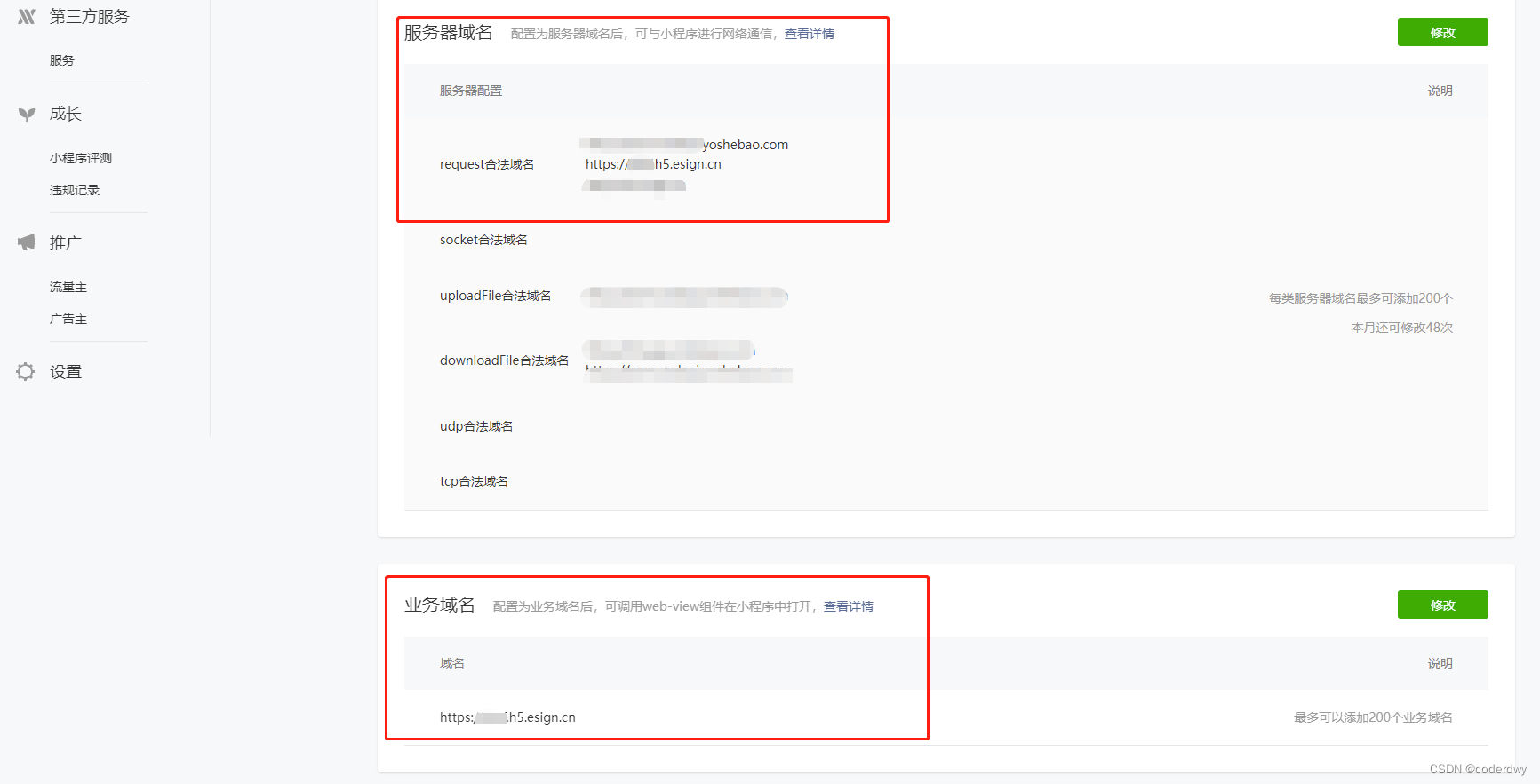 然后我就去百度了下,发现是需要配置e签宝的业务域名的, 之前是把接口配置在了服务器域名了,所以不行,