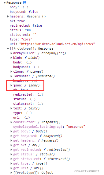 别急,点开Response的Prototype原型,会发现有一个json方法。