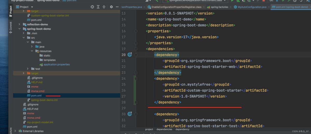 在我们的日常开发工作中,经常会有一些独立于业务之外的配置模块,我们经常将其放到一个特定的 包下,然后如果另一个工程需要复用这块功能的时候,需要将代码硬拷贝到另一个工程,重新集成一 遍,麻烦至极。如果我们将这些可独立于业务代码之外的功能配置模块封装成一个个starter,复用的时 候只需要将其在pom中引用依赖即可,SpringBoot为我们完成自动装配,简直不要太爽。