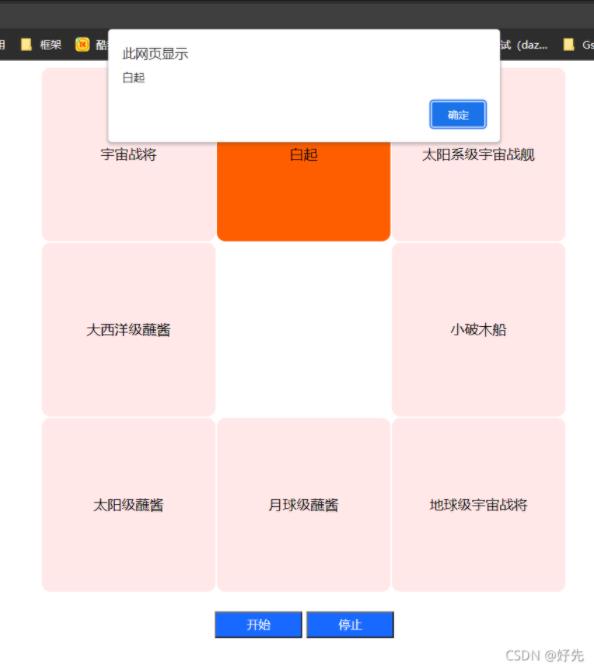 var list = ['太阳系级宇宙战舰','白起']; // 想要中的奖品放进去