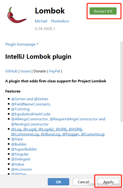 一、安装lombok插件:步骤:File ——》Settings——》Plugins. 搜索lombok,点击安装install。然后会提示重启,重启。