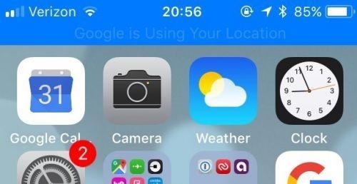 这个更新对很多用户来说是值得欢迎的。不仅如此,iOS11还将能让用户了解到究竟是哪些应用一直在追踪他们的位置。从下图可以看到,当系统检测某款应用一直在追踪用户位置数据的时候,它就会在界面最上方的蓝色栏中显示,如“谷歌正在使用你的位置(Google is Using Your Location)”。