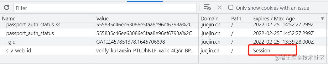 Expires 设置的是绝对值,即直接设置当前cookie在什么时候过期。 就像下面图中的这样, GMT格式。