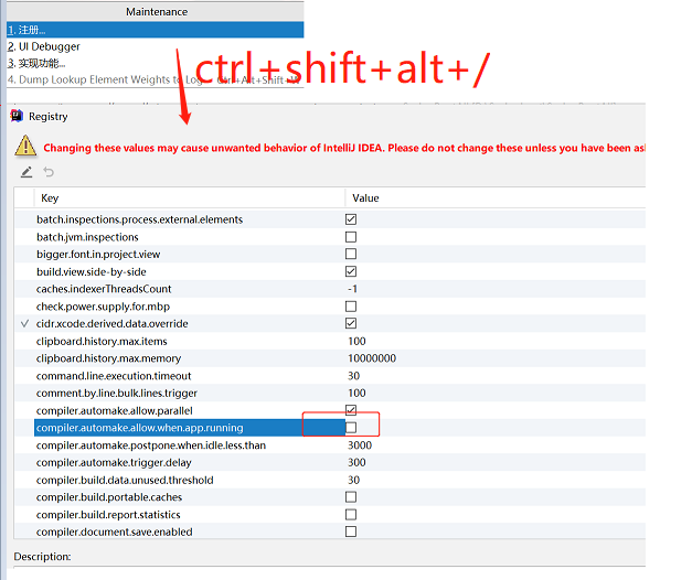 3、 按住ctrl shift alt /出现下图,点击注册找到下图勾选即可。