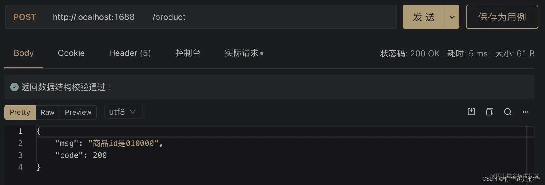 可以看到我们成功的返回了相同的数据结构。