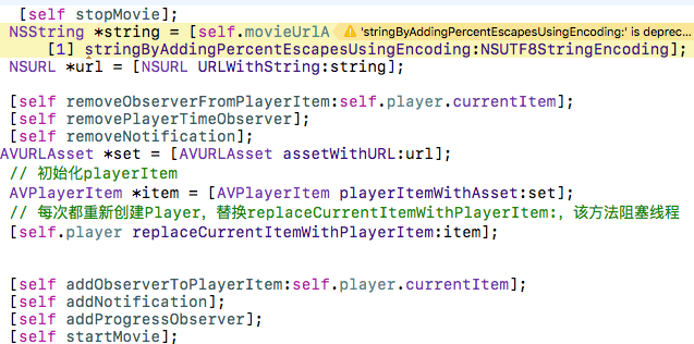githup上ZFPlayer 作者表示在iOS9后,AVPlayer的replaceCurrentItemWithPlayerItem方法在切换视频时底层会调用信号量等待然后导致当前线程卡顿,如果在UITableViewCell中切换视频播放使用这个方法,会导致当前线程冻结几秒钟。遇到这个坑还真不好在系统层面对它做什么,后来找到的解决方法是在每次需要切换视频时,需重新创建AVPlayer和AVPlayerItem。