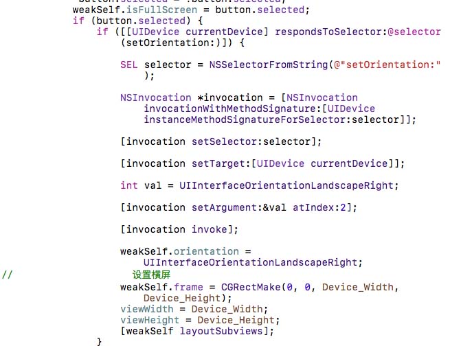 没有做封装,可以封装个方法,传入当前的oriention,然后很霸道的实现横竖屏切换,demo 是用纯代码写的,还用了懒加载,这在横竖屏切换的时候有很大的弊端,因为懒加载的缘故,frame已经确定,切换横竖屏的时候不得已在layoutSubviews里把布局代码重新写一遍,这时候就是Masonry 布局的好处了。(Masonry 要更新到最新,要不然iOS10 会崩溃,莫名其妙),还有就是返回的时候要再次调用这个方法设置为竖屏。实现横竖屏的前提是当前ViewController的- (UIInterfaceOrientationMask)supportedInterfaceOrientations 必须支持横竖屏。
