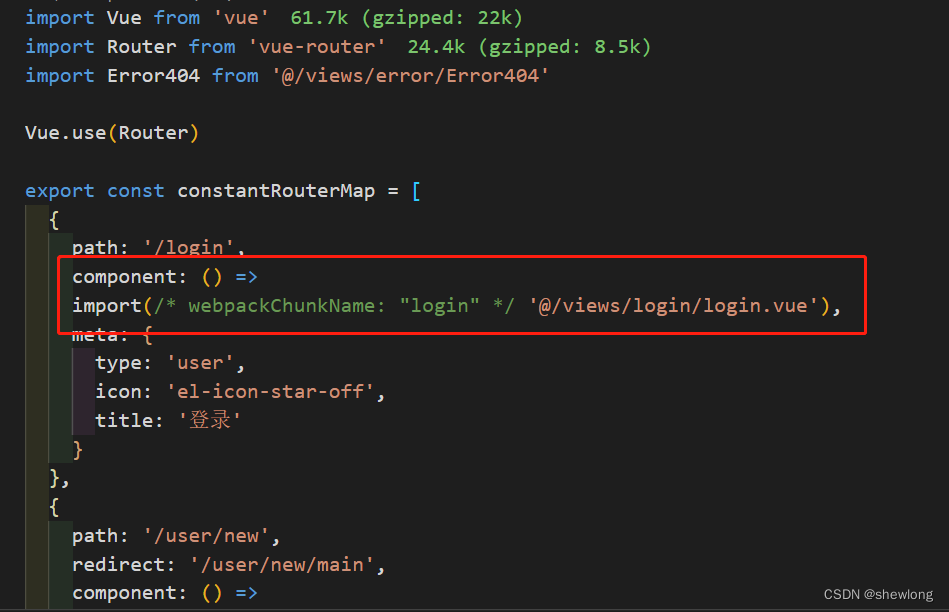 component: () => import(/* webpackChunkName: "login" */ '@/views/login/login.vue'),