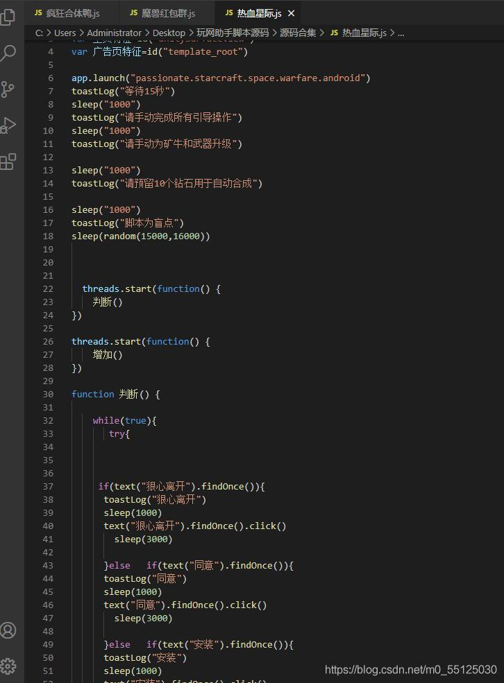 今天给大家分享一个包含最新50个热门脚本合集的源码,目前包括:矿牛守卫赚、热血星际、捉妖特工队、体重保卫战、炎兔、魔兽红包群、横扫太空、疯狂合体鸭、动物星球、猜猜什么歌等最热门的脚本源码,源码可以直接运行。学完直接可以开撸代码,成为大神。