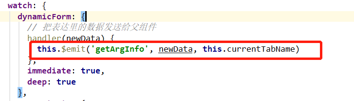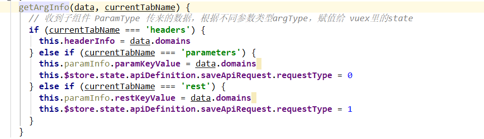 这里在父组件中绑定了自定义事件@getArgInfo,事件触发的getArgInfo方法: