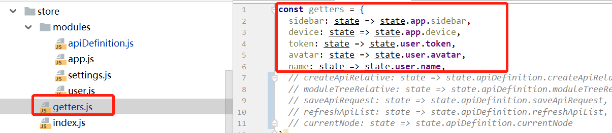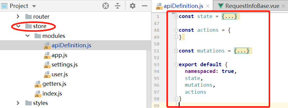 这是脚手架里统一存放的位置,也可以跟上面的actions等写在一个文件中。
