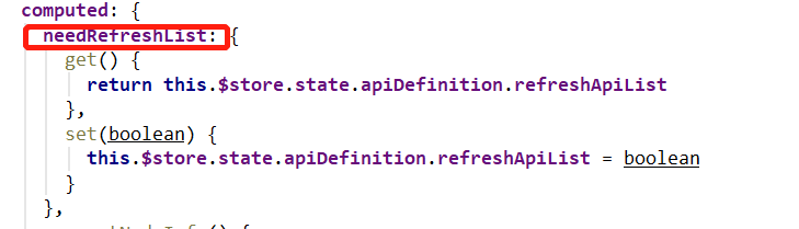 这里我定义了一个计算属性叫needRefreshList,因为计算属性最终出现在vm上,那么我在模板里可以直接needRefreshList使用。而在一些其他方法里也可以通过this.needRefreshList来获取。
