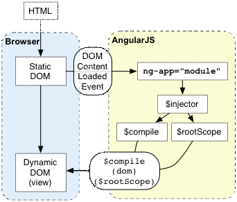 下面描述angular是如何启动的(参考图表与下面的例子):