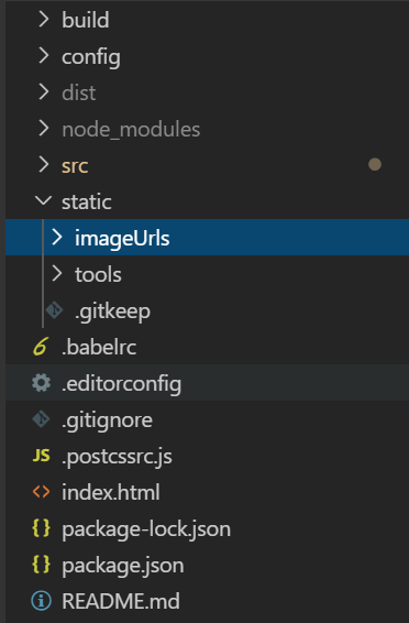 static:在这个目录下文件不会被webpack处理,简单就是说存放第三方文件的地方,不会被webpack解析。他会直接被复制到最终的打包目录(默认是dist/static)下。必须使用绝对路径引用这些文件,这是通过config.js文件中的build.assetsPublic和build.assertsSubDirectory链接来确定的。任何放在static/中文件需要以绝对路径的形式引用:/static[filename]。