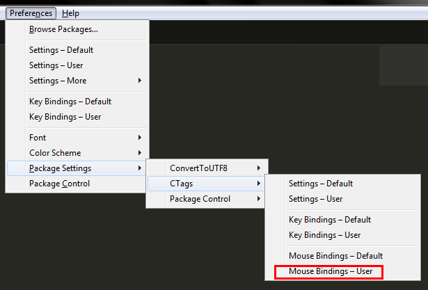 复制以下代码到Preferences->Package Settings->Ctags->Mouse Bindings-User