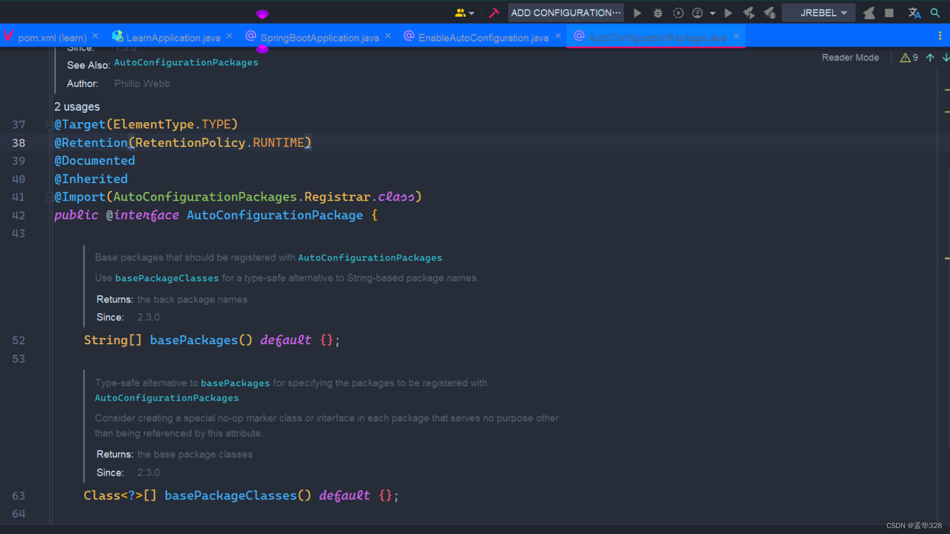 首先,讲一下 @AutoConfigurationPackage。看一下该注解的定义: