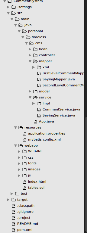 评论系统关键是嵌套层数以及数据库表设计。嵌套层数多,表结构复杂,呈现也麻烦,最后决定实现一个二级评论。系统由maven构建,springboot快速搭建spring环境。前台采用angularjs bootstrap,后台使用springmvc mybatis,数据库采用MySQL.前台请求后台API操作评论。
